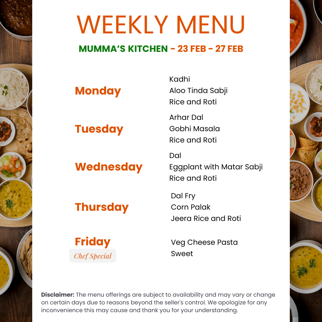 | Meal Type | Mon to Fri only |