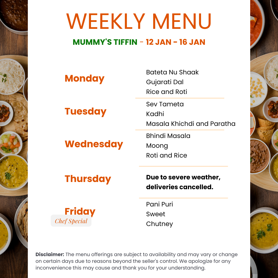 Friday Special: This seller offers a special menu on Fridays for all plans. Refer to the image menu for more details.